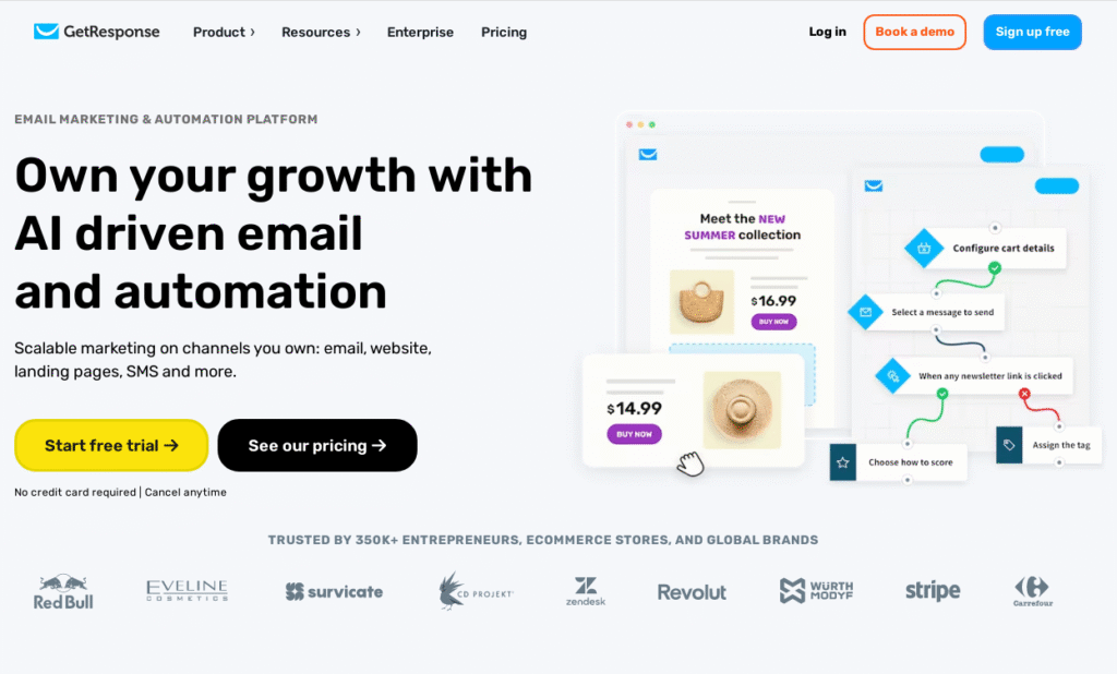 GetResponse stands out with its integrated webinar tools, perfect for coaches, educators, and service-based entrepreneurs who want to build relationships through live sessions.