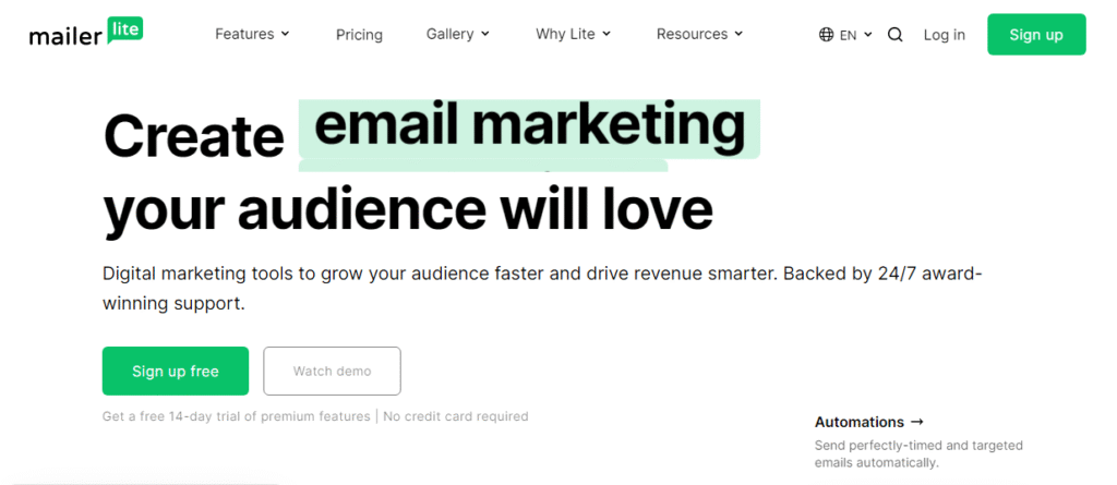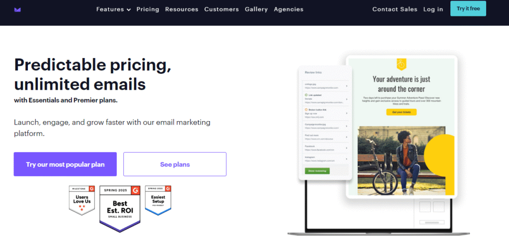 MailerLite focuses on simplicity and value. With clean design templates and a generous free plan, it’s perfect for creators and small businesses.
